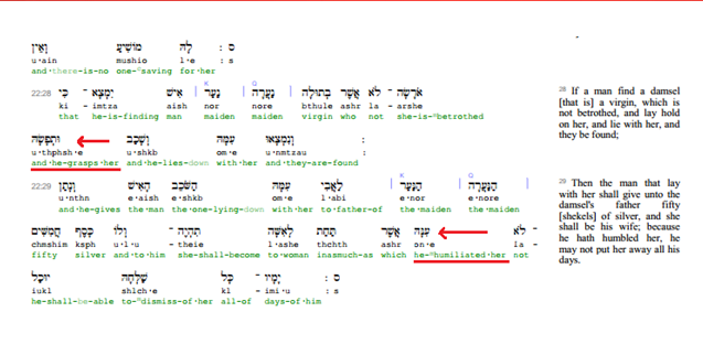 And at the end of the Lexicon it says: “Humiliated her”, if she consented to sex at the first place, why would at the end of the verse say “Humiliated her”, if she consented to it at the first place?