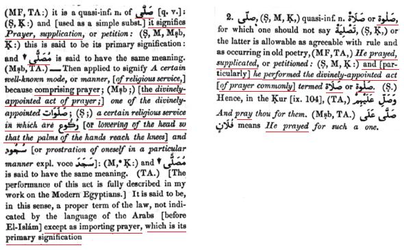 Recently I came across an article, the title was “As-salaat.” I had a read of it. Reading through it, the person was arguing that “Salawat” in the Quran does not mean “prayer” (worship), according to him it means, “a set of guidelines or instructions.” The problem the author has, he didn’t provide any source (Arabic -English Dictionary) to back him up. He interpreted the word “Salawat” with his own understanding. Another thing people need to know is, he does not know the Arabic language. He attacked Arabs for translating the word “Salawat” to “prayer”, according to this self made illiterate scholar, the Arab Scholars are all wrong for nearly 1400 years and he is right. Edward Lane elucidates what “Salawat” means: