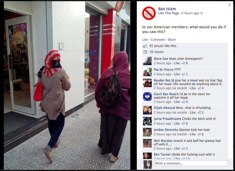 Also if you look closely that picture is posted on a facebook page called ‘BAN ISLAM’. I for one never expected any sympathetic responses from the kind of twats that a page like that attracts.