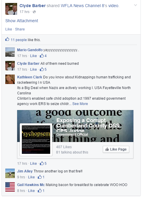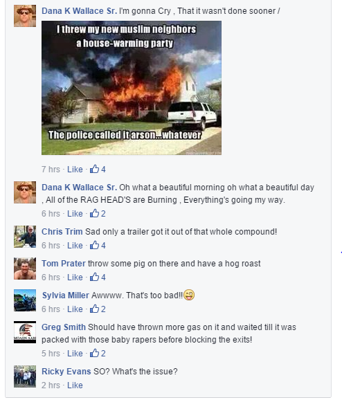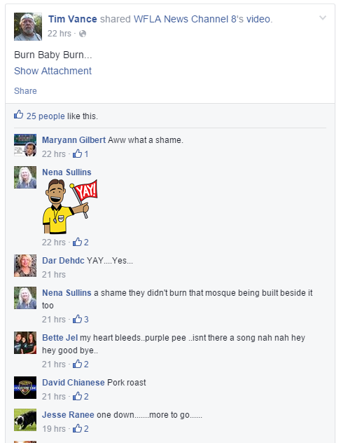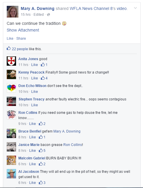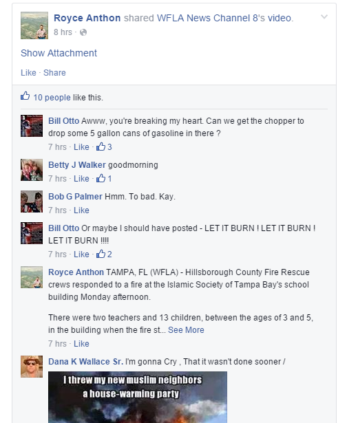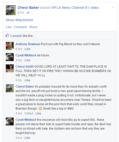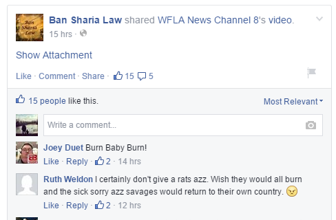 The news about this fire was published on Wfla’s Facebook page with a video. Most of the comments were positive and people hoped that no one got hurt. But then there were others who called for killing of Muslims…