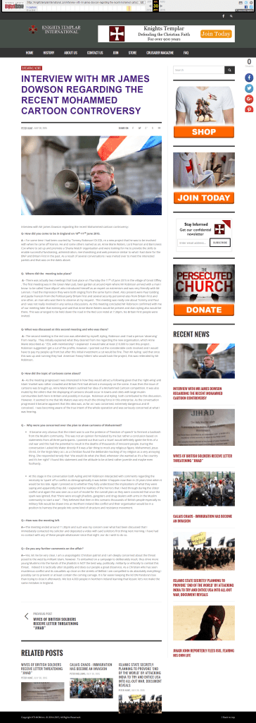 URL link of the original article: https://knightstemplarinternational.com/interview-with-mr-james-dowson-regarding-the-recent-mohamed-cartoon-controversy/